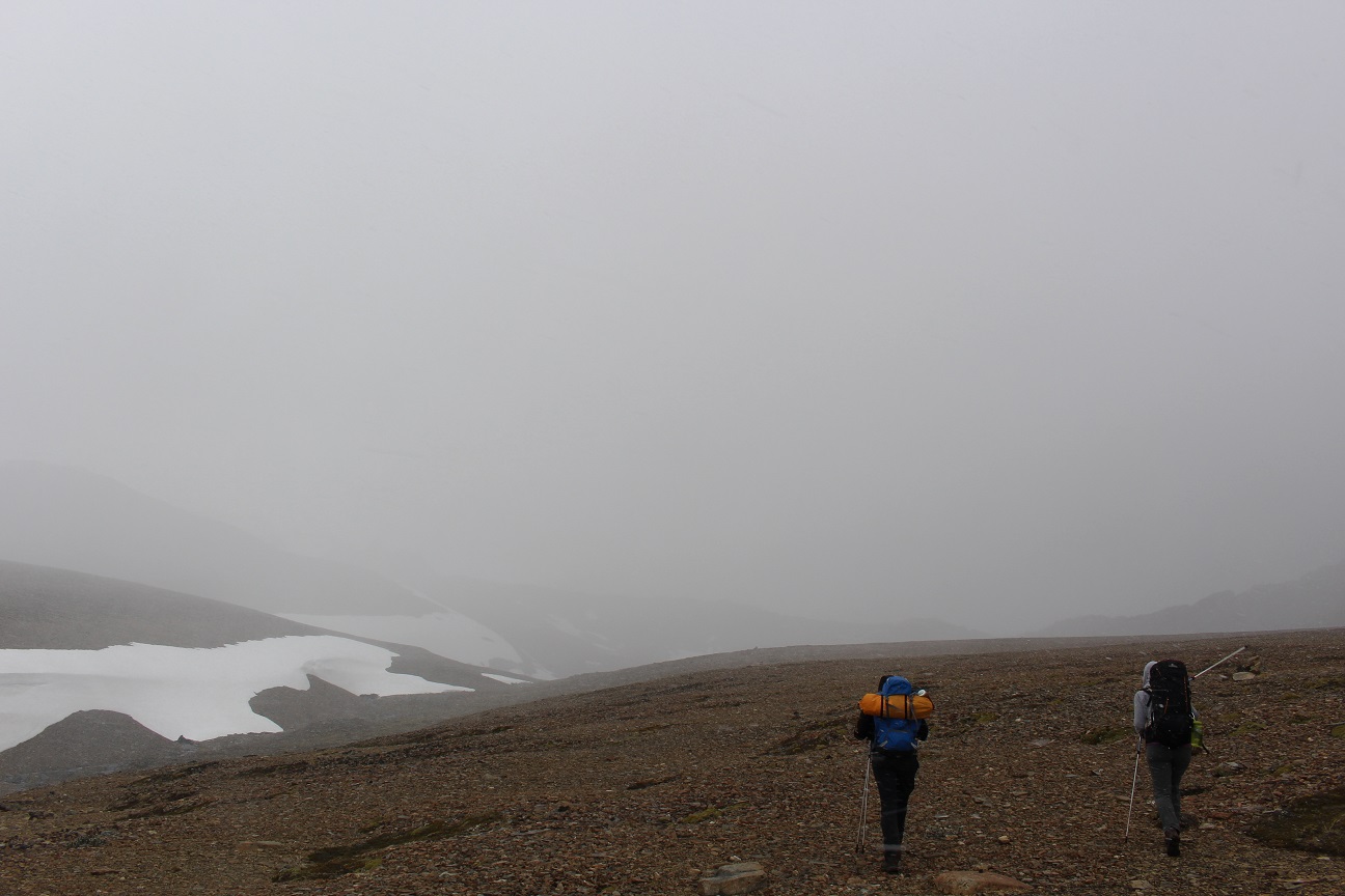 It was a bit easier, because as the days passed our backpacks got lighter. We started walking on lowlands, then through a forest to later go through a pass. When we got closer to the pass it started snowing, with quite a lot of wind and the visibility reduced.